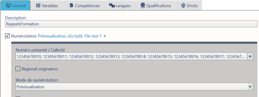 Pour activer le Round Robin, il est nécessaire de renseigner dans l’activité sortante la liste des numéros que vous souhaitez afficher.
