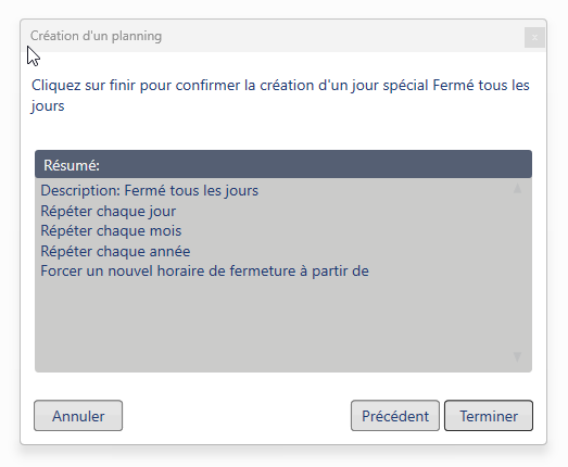 6. Confirmer la création du nouveau jour spécial dans le contexte du planning