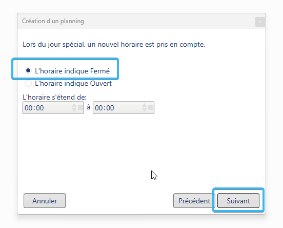 Paramètres Opérationnels - Configurer un planning toujours fermé