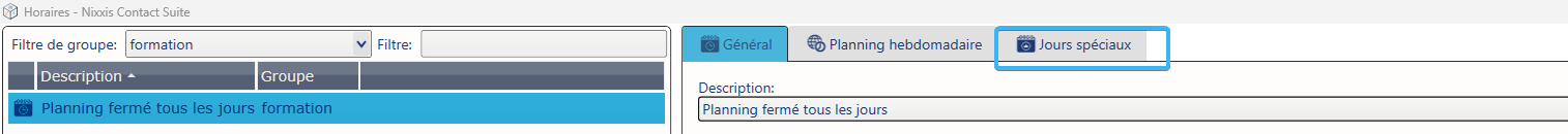 2. Accéder à l'onglet "Jours spéciaux"