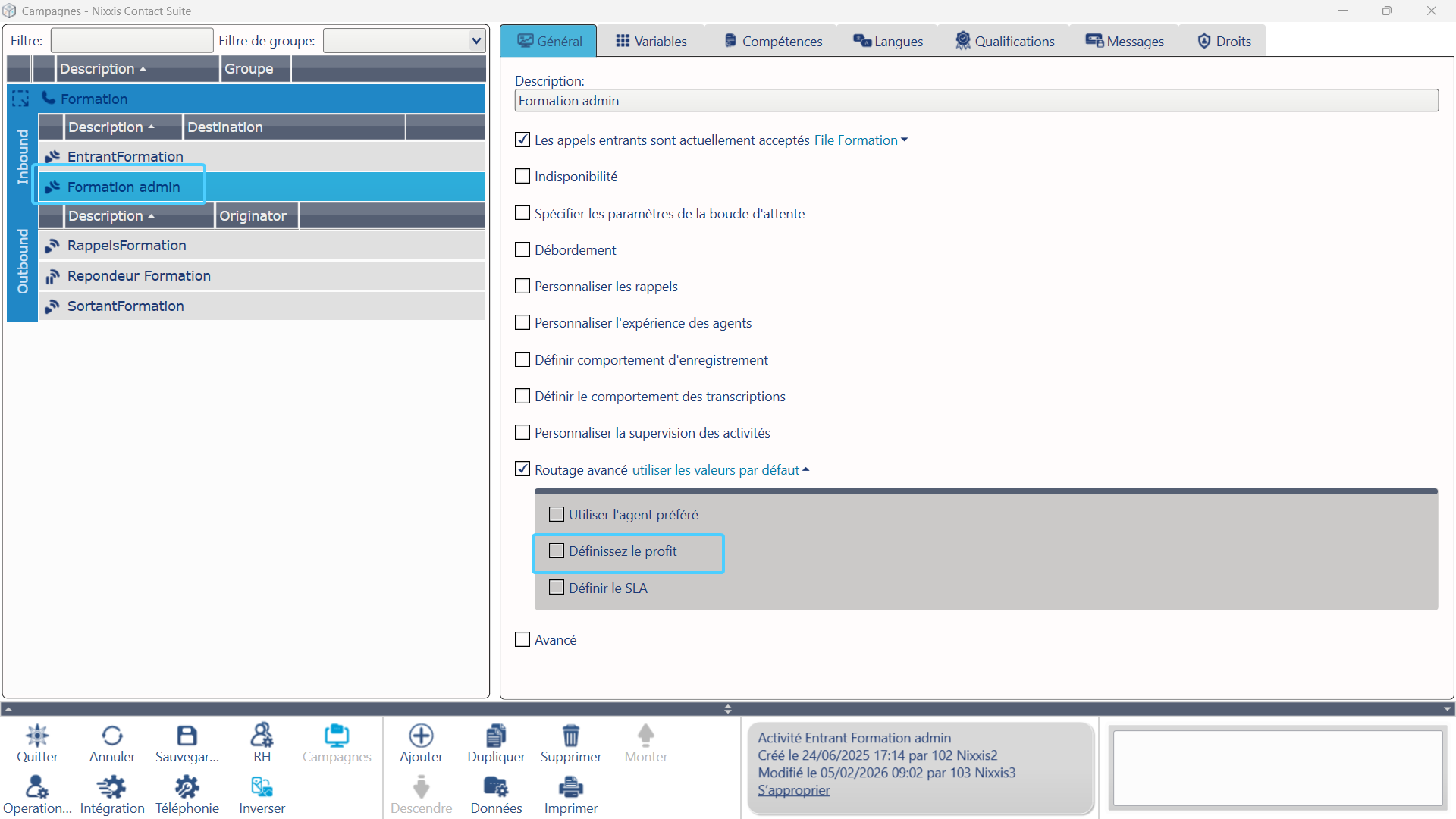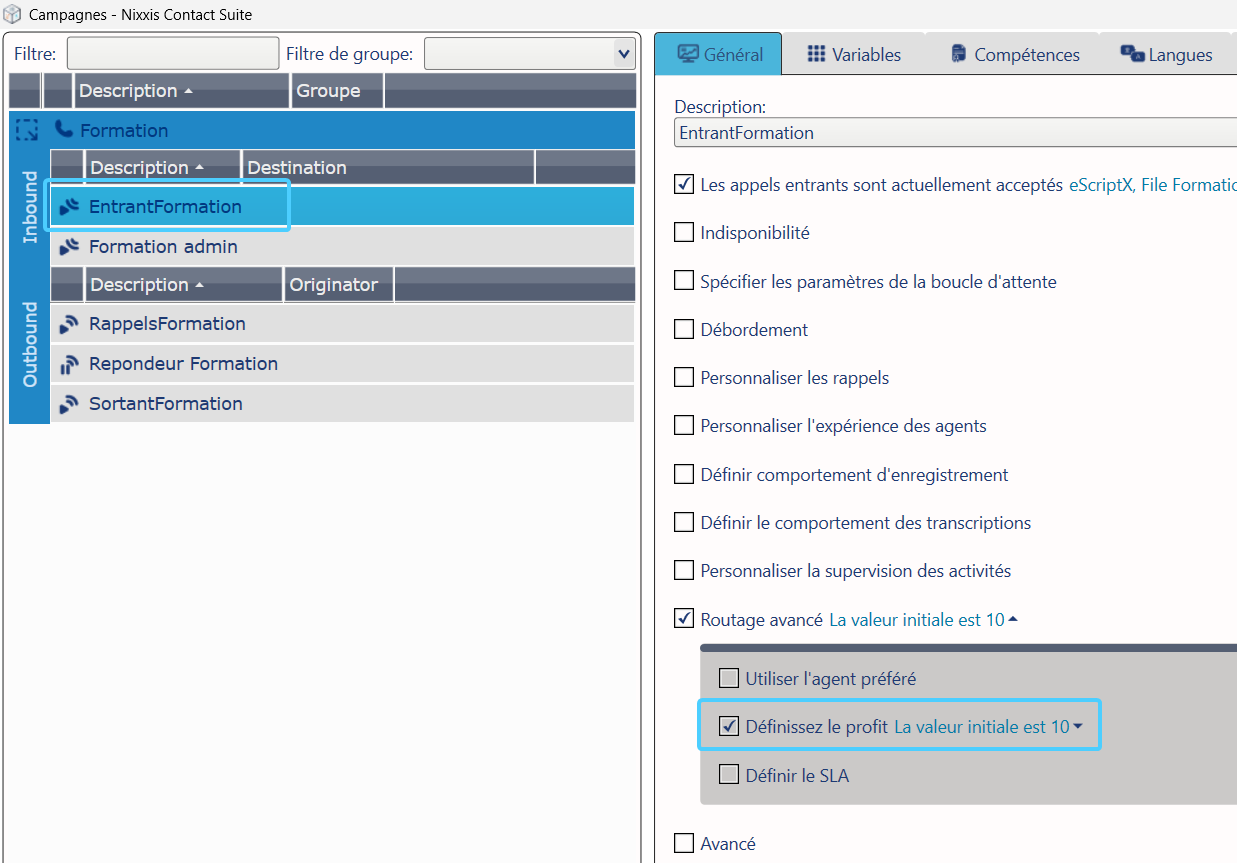 Passage d'un appel entrant en priorité sur d'autres via la "Définition du profit"
