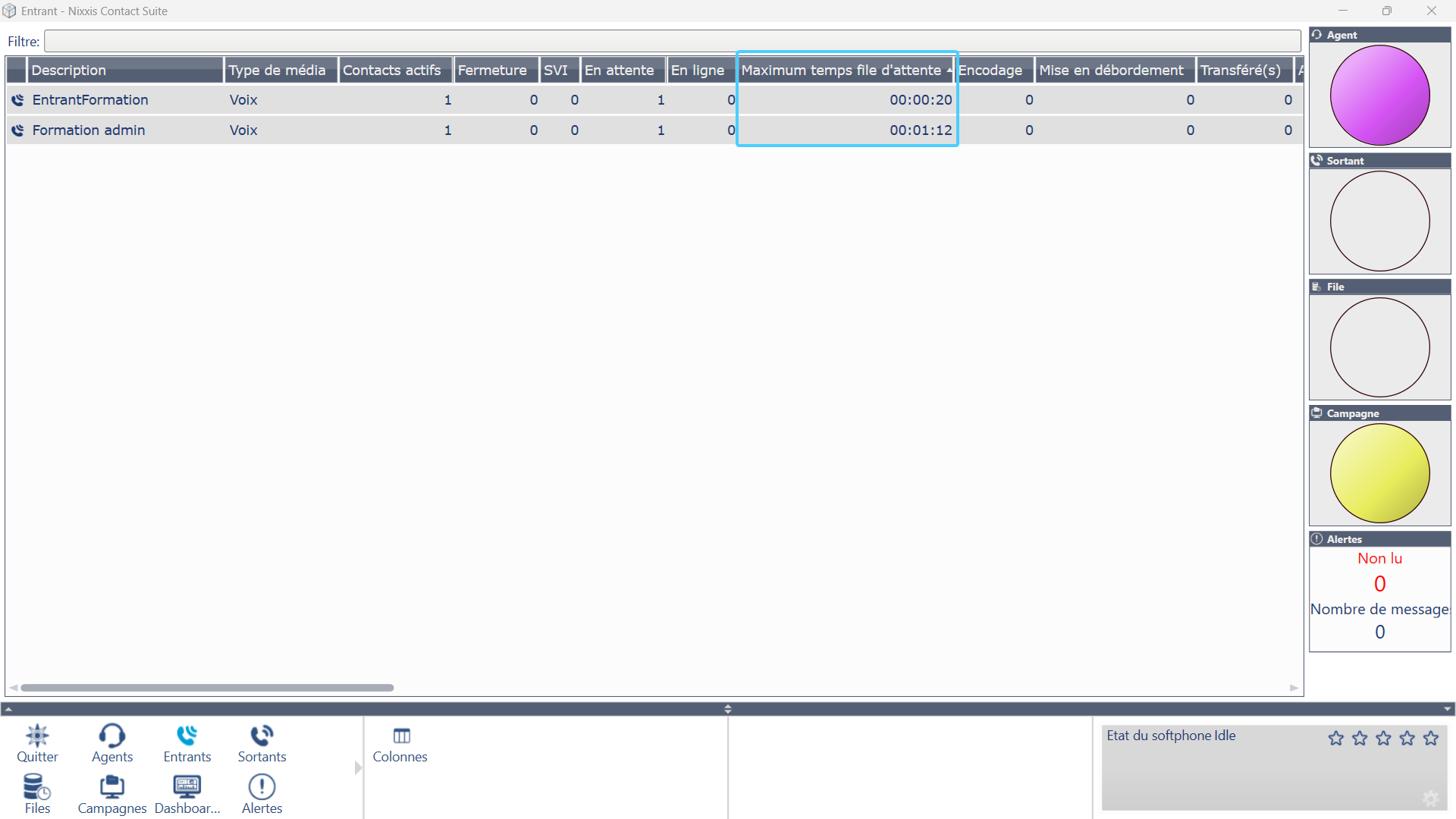 Cette configuration au niveau de la file d'attente donne la possibilité de favoriser la distribution des appels entrants sur une activité en priorité sur d'autres activités. La "Priorité Haute" permet une identification visuelle de l'appel entrant ...